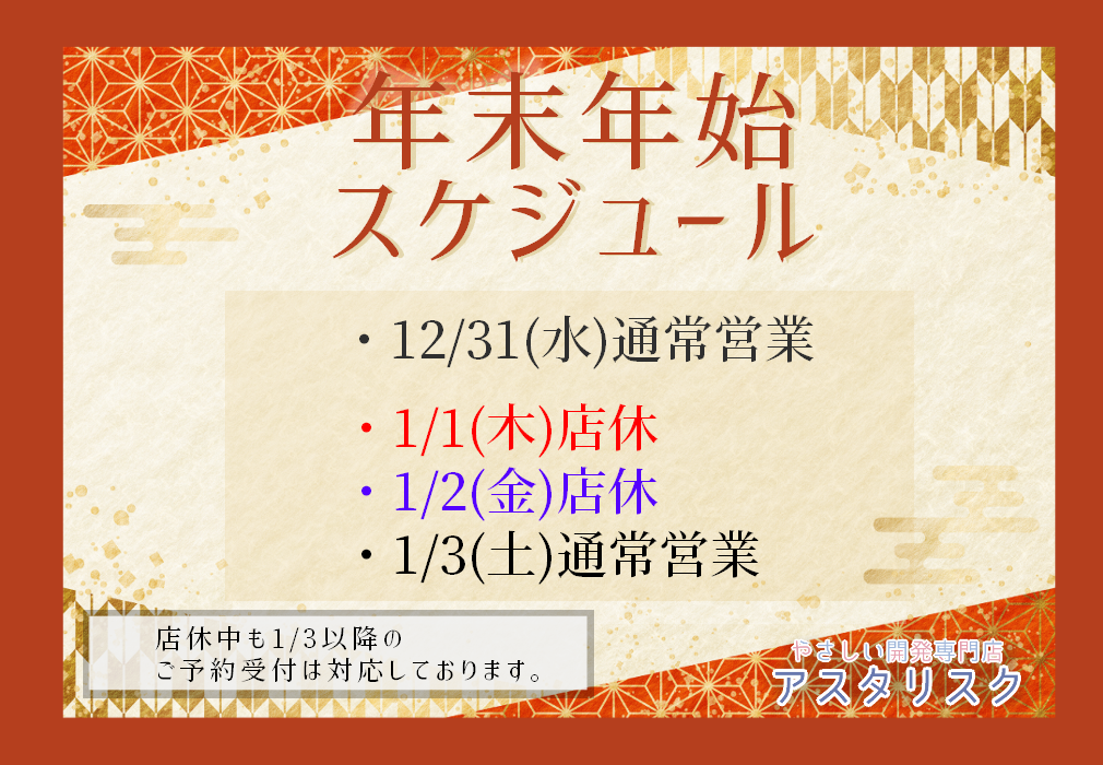 2025年の年末~2026年の年始スケジュールは下記となります。
